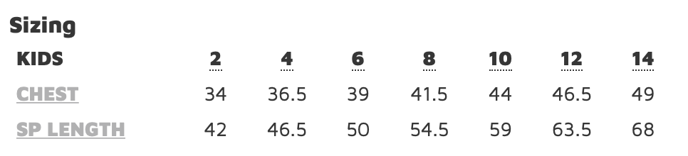 Width measurements are from seam to seam, under the armpit, with the garment lying flat.
